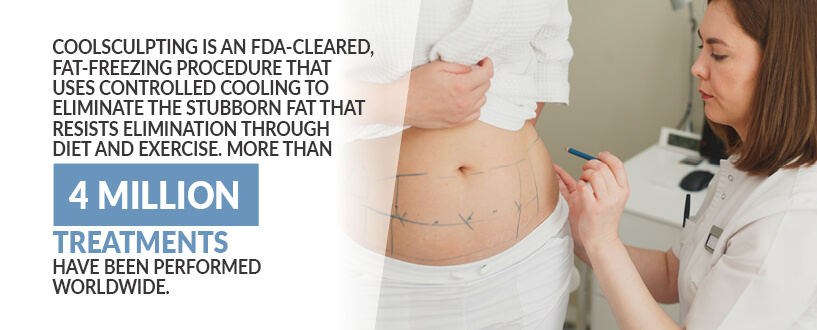 - CoolSculpting: This procedure uses controlled cooling to eliminate stubborn fat that will not disappear through diet and exercise. CoolSculpting is FDA-cleared and has been performed 4 million times worldwide.